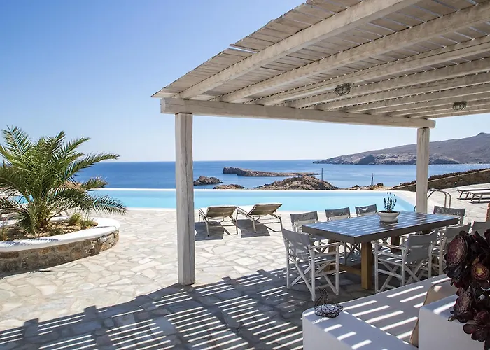 Goście mogą zjeść posiłek w wyposażonym aneksie kuchennym, a także w w jadalni w obiekcie. Kuchnia wyposażona jest w czajnik elektryczny, lodówkę i piekarnik. Restauracja Mykonos Star Dining Veranda Restaurant leży w około 400 m. Dojazd na Mykonos zajmuje 15 minut. Przyplażowa willa oferuje basen oraz wypożyczalnię rowerów.